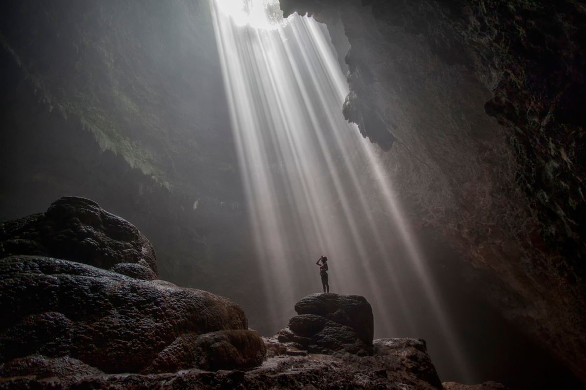 Satu lagi aktivitas yang tak boleh kamu lewatkan adalah caving di Goa Jomblang. Gua vertikal ini terkenal dengan “cahaya surga” — pancaran sinar matahari yang menembus dasar gua dan menciptakan suasana magis.