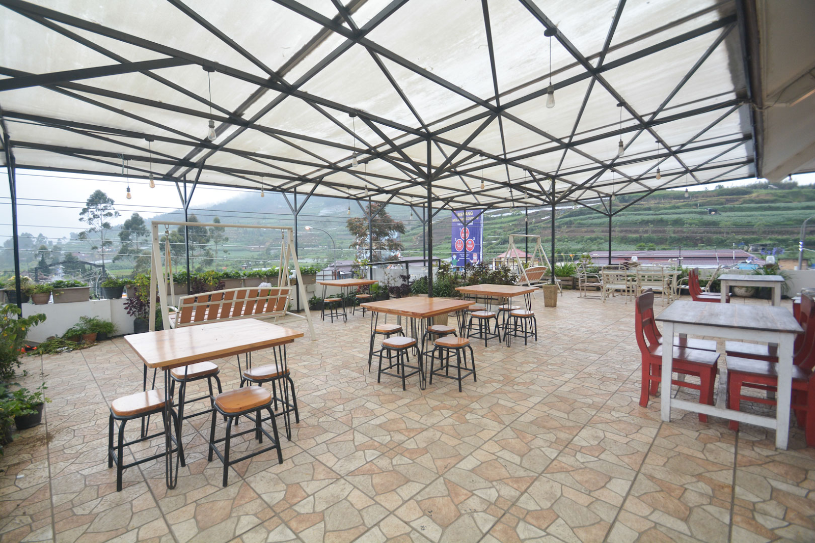 Restoran ini memiliki area outdoor yang menawarkan pemandangan alam khas Dieng yang indah. Banyak wisatawan memilih tempat duduk luar untuk menikmati makan ditemani angin sejuk dan panorama perbukitan. Kehangatan minuman dan hidangan membuat pengalaman makan lebih berkesan. Tempat ini jadi pilihan ideal untuk bersantai lama setelah aktivitas wisata.