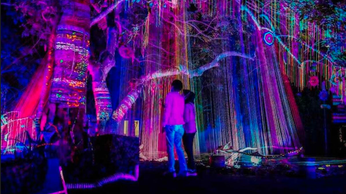 Hutan Menyala Bandung jadi salah satu destinasi malam paling estetik yang wajib kamu kunjungi kalau lagi di Bandung. Tempat ini menawarkan pengalaman jalan-jalan di tengah hutan pinus yang disulap jadi dunia cahaya penuh warna. Ribuan lampu LED, video mapping, dan instalasi artistik bikin suasananya magis banget, seolah kamu lagi masuk ke dunia dongeng.